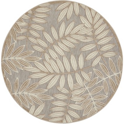 Nourison Aloha Tropical Palm Flatweave High-Low Indoor Outdoor Round Rug Grey 7’10” x 7'10"