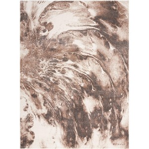 Bring artistic expression to your living room, bedroom, or home office with this abstract rug by Nourison Home, American Manor Collection. A splash of mocha brown tinged with taupe creates swirls of painterly pattern that stands out on its neutral ivory ground. Skillfully power-loomed of polyester and polypropylene, American Manor complements modern and contemporary décor.
