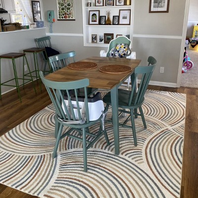 - Washable abstract rainbow rug brings retro-inspired style to your space