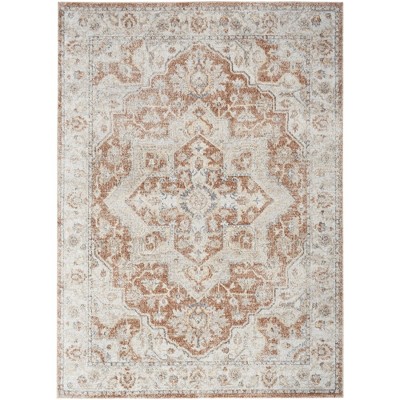 Nourison Astra Machine Washable 6'7" x 9' Ivory Gold Vintage Indoor Flatweave Rug