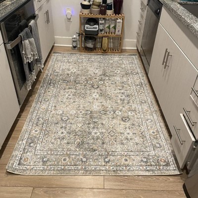 I’ve been using this rug for a few weeks in my kitchen and I love it. It’s sort of a flatter type rug but it’s still comfy under my feet. The design is beautiful and looks almost vintage. My favorite part is that it’s washable. Being in the kitchen I’m always making messes so the fact that I can throw this in my washing machine is amazing.