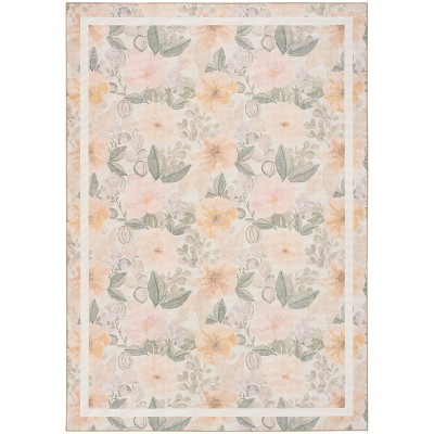 Nourison Botanical Washables 5' x 7' Beige Multicolor Farmhouse Indoor Flatweave Rug