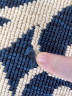 I love the look and feel of the rug. Problem - three pulls with colors - not in areas for that colors I was really disappointed. I decided to keep it and try to mask it with the furniture.