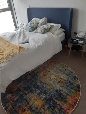 I just bought this beautiful rug a week ago for my living room, I saw it displaying on the sales floor It looked like a paint with bright colors and looks amazing on my living room.