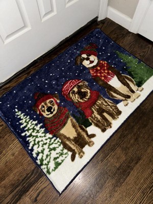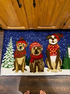 Nourison Christmas Snow Dogs Holiday Indoor Kitchen Entryway Non-Skid Mat Navy 2'x3'