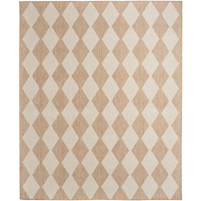 With its striking geometric pattern, this Courtyard Collection outdoor rug exudes contemporary style. Its subtly textured surface is crafted in faux jute hues for a seamless complement to modern settings. Machine made from a blend of polypropylene and polyester in a flatweave style that stands up to heavy traffic and is easily washable outdoors: just hose-rinse and air dry.