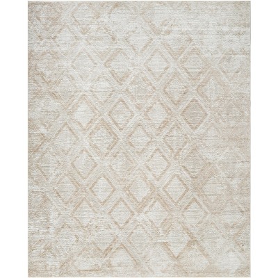 Bring classic style with a modern twist to your space with this beige abstract rug from the Dekor collection. The traditional bordered design is overlaid with a grid pattern, light distressing, and a shimmering high-low finish that adds a unique dimensional look. Made from a blend of durable polypropylene and polyester that’s easy to clean.