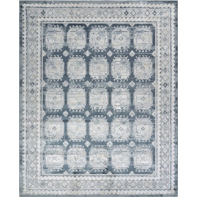 Create a striking focal point for your décor with this navy and grey geometric rug from the Dekor collection. This contemporary design features a linear pattern that forms a series of stylized diamonds, which is enhanced by a high-low texture, lustrous sheen, and distressed finish for added dimension. Made from a blend of polypropylene and polyester for stress-free maintenance.