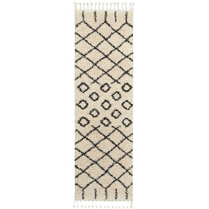 With its upbeat diamond design, cozy tassels, sumptuous shag construction and cosmopolitan color palette of cream and black, this stunning Moroccan Shag area rug from Nourison seamlessly blends the best of the old world with the new. Hand loomed from a fantastic 100% Polypropylene Friese for stress free living and to go the distance beautifully.