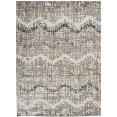Really nice silver/cream colored rug. I love the distressed look. Very pretty. I just purchased another for my family room. Decent quality. I should probably put a rug bad under but kinda like the flat look. We don't sit on the floor in this room, so does not matter.