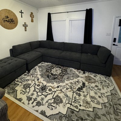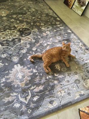 I am so extremely happy with this rug! I’ll start by saying, I genuinely searched and searched for an entire week before accidentally stumbling upon this beauty. It’s so soft, the pile height is exactly what I was looking for, and the rug is just as pictured. The beautiful filigree of flowers and feather like pattern fits the aesthetic of our family room perfectly. There’s some corners that’ll well work on laying down, but that’s to be expected. I also really appreciate that the rug comes with a card with instructions on how to handle corners that stick up after shipping. It seems really high quality for such a wonderful price. I’m just so pleased with this rug and absolutely recommend this brand to anyone looking for artwork in the form of an area rug!