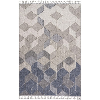 Grounded in symmetry, this modern geometric rug from the Paxton Collection easily complements contemporary décor. It showcases a repeat pattern of diamonds, chevrons, and lines in neutral grey and ivory tones finished with braided fringe edges for an eclectic vibe. Machine-made of polypropylene fibers in a textured loop-pile.