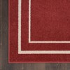 Add color and definition to your patio conversation space or indoor area with this contemporary red outdoor rug from the Nourison Essentials Collection. The double bordered rug design is made with softly textured, low-profile polypropylene yarns that stand up to heavy foot traffic. An ideal choice for busy households, this kid and pet-friendly rug does not shed and is washable outdoors only: hose-rinse spills and air-dry to clean. To extend the life of your rug, bring it inside during extreme weather.