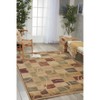 Opposites attract when graceful swirls co-mingle with a modern cubist print. The understated color palette of affluent beige, cream, blue, mauve and green makes an incredibly expensive-looking statement. Stunning hand-carving adds extravagant texture, depth and dimension.