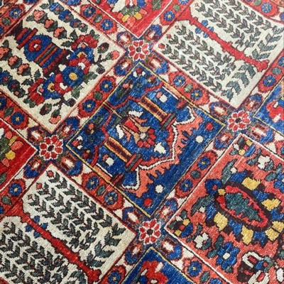 The colors in person are bright red and royal blue— not what is pictured. If you are going for a bright, vibrant rug then you’ll probably like this but if you wanted a more muted vintage looking feel this is not the rug for you