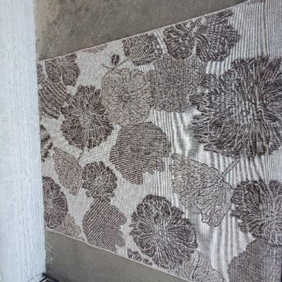 My favorite part of this rug is the large floral print! It's beautiful! I'm so glad it was available in a neutral color too. It goes so well with our patio furniture. Highly, highly recommend!