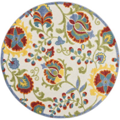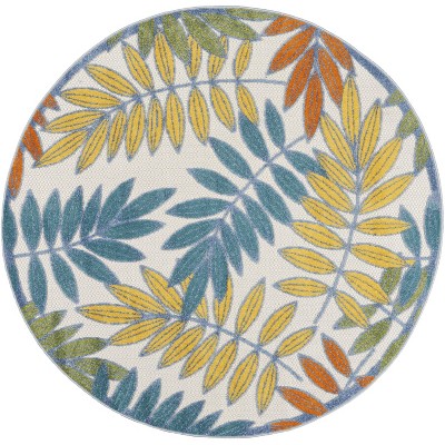 Nourison Garden Party GRD03 Indoor/outdoor Area Rug - Ivory Blue 5'3" x round