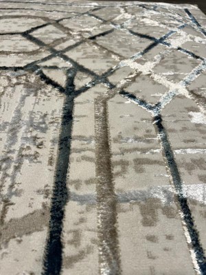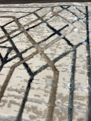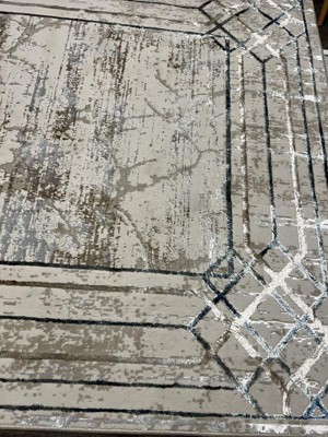 Transport your living room or bedroom to Hollywood’s golden age with this Art Deco rug from the Glam Collection. The abstract, marble-like pattern is framed by an ornate geometric border in blue and beige, enhanced with a subtly raised texture that adds visual intrigue. Finished with a glamorous sheen that shifts in different light, this contemporary rug is made from softly textured polyester.