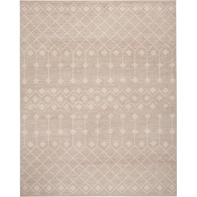 The Moroccan diamond bead pattern of this Grafix area rug creates a dimensional look that draws the eye and pulls a room together. The soft combination of beige and ivory creates a subtle yet stunning focal point for the contemporary home. Made from polypropylene yarns that are easy to clean, durable, and non-shedding – great for high-traffic areas and busy households with pets and young kids.