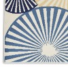 - Bold, radiating disk patterns in ivory, navy, blue, and beige