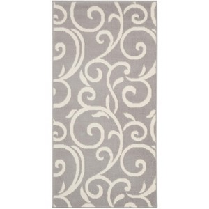 Curling vines form a lush abstract garden in this Grafix Collection area rug. This botanical style rug features ivory patterns on a soft grey field, with voluptuous curves creating a statement of soft comfort with artistic flair.