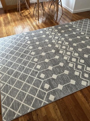 I was hesitant at first, but now am very happy I purchased this Nourison 5’ x 7’ rug. A strong but soft weave in a simple geometric design will stand up to years of foot traffic, cats and a dog. I love this rug!