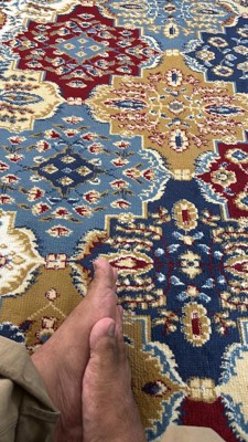 We just got this rug and put it down in our room, replacing an old rug. It is more beautiful than I expected! We are very pleased with the quality and beautiful color of this rug. Also, the price was very reasonable!