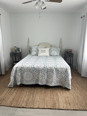 I purchased this rug in the shade "ivory" to layer in my bedroom for ultimate cozy vibes. I am so pleased with how quickly it arrived and how beautiful it sits over top another rug I already own. It adds the perfect amount of gorgeous farmhouse texture. Already want to get the deep green for my living room.. don't tell my husband :) Highly recommend this colorful jute beauty