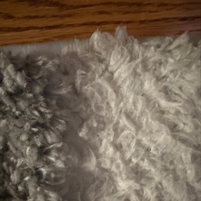 This rug is terrible. The white portion is so thin and after it is walked on a couple times it looks like matted cotton balls. Very cheap and not worth the money. I’ve had cheaper rugs that have looked better and lasted longer. I can’t wait to throw this away. In addition it has a weird smell and is impossible to vacuum the white portions. It’s the worst.