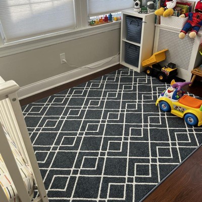 With its crisp interlocking diamond pattern, this geometric rug from the Modern Lines Collection brings modern energy to your living room, bedroom, kitchen, or hallway. The ultra-chic design is machine-made in a looped construction that offers soft and intriguing texture. Modern Lines is made from durable, easy-clean fibers and is finished with a non-skid back.