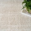 Add a touch of modern luxury to your space with this sleek ivory and beige Modern Shag rug. The subtly distressed pattern offers a contemporary edge, while the plush texture invites you to sink your toes into its soft, inviting pile. Perfect for creating a cozy and stylish atmosphere in any room. OEKO-TEX Certified.
