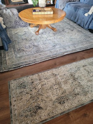 Love this rug that I purchased for my laundry room. Needed a little something to spruce up area in front of the washer and dryer. This 2'6" x 4'6" size fit perfectly! It's soft and and looks very pretty. I like the nice subtle colors of grey and blue.
