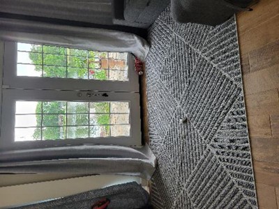 Love the rug. Fits perfectly in front of my door and will be perfect for not showing dirt and will be easy to keep clean!!!