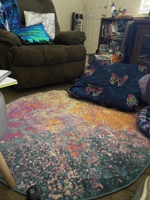 I purchased last week for my “she” nook. It is absolutely beautiful! It really pulls my relaxing area together. I love color and this area rug does not disappoint.