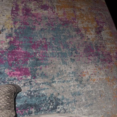 Clouds of magnificent color swirl and mingle with painterly effect in this exciting abstract artwork from the Passion rug collection. Luscious cut-pile adds softness and textural drama to the sweeping aura of multi-color jewel tones. A modern beauty in easy-care fibers with serged edge.