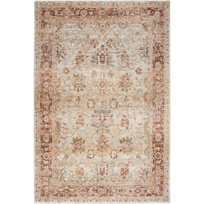 Bring traditional style to your space with this Persian rug from the Petra Collection. It features a detailed medallion pattern on an ivory ground, framed by a classic border and distressed finish that adds vintage flair. Machine-made from durable, easy-clean fibers that will easily enhance your living room, dining room, bedroom, kitchen, or hallway.