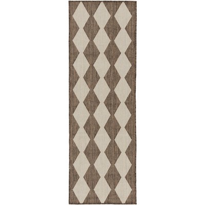 Make a statement both inside and outside your home with this checkered diamond outdoor rug from the Positano collection. The retro tile-inspired design adds a stunning pop of pattern, boosted by a space-dyed color effect in natural brown. This versatile rug is flat woven for easy placement in all your most used rooms – from the living room, kitchen, and bathroom to the patio, backyard, or deck. Hand washable outdoors only: rinse with a hose and air dry.