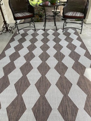 - BOLD STYLE: The oversized checkered diamond pattern of this outdoor rug adds an instant wow factor to your décor.