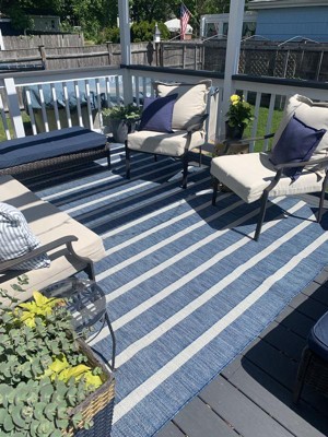 This is a great indoor/outdoor rug with a classic yet nautical feel. I highly recommend.