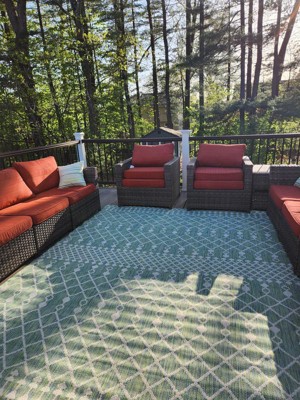 Nice low profile outdoor rug. Love the deep blue color and pattern.