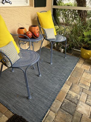 I purchased this for on my deck beside the pool. It fits just right between 2 other area rugs so when it’s so blazing hot out, you don’t burn your feet if you’re barefoot!! Blue is my favorite color so I really like that also!! It’s hard to judge the quality since I just put it down but it seems to be good so far!!