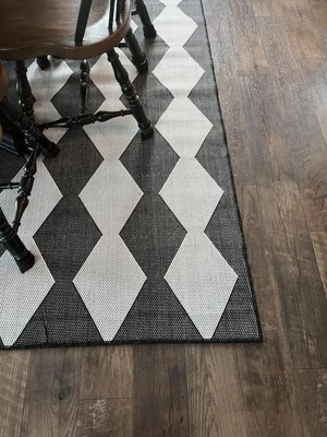 - BOLD STYLE: The oversized checkered diamond pattern of this outdoor rug adds an instant wow factor to your décor.