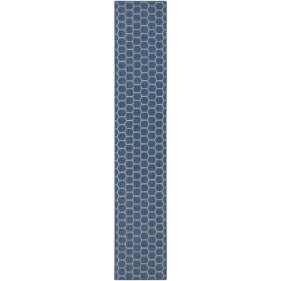 Nourison Positano 9' x 12' Navy Blue Diamond Modern Flatweave Indoor/Outdoor Rug