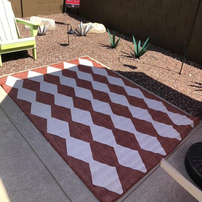 This rug has received mixed feedback from guests, with many appreciating its stylish design and affordability for outdoor spaces. The texture and color options are often highlighted as appealing features. However, some guests have expressed disappointment regarding the quality, odor, and discrepancies between the product and its online representation. Despite these concerns, many guests find it suitable for low-traffic areas and enjoy its modern aesthetic.