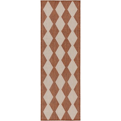 Nourison Positano 8' x 10' Terracotta Diamond Modern Flatweave Indoor/Outdoor Rug