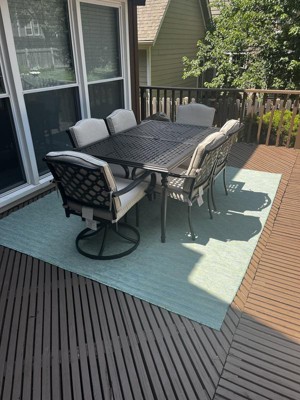 Guests are generally pleased with the quality, color, and durability of this rug, making it a great addition to outdoor and indoor spaces. It fits well with various furniture setups and is easy to clean. Some guests noted issues with the rug laying flat and color discrepancies, but overall, it is considered a good value for the price.