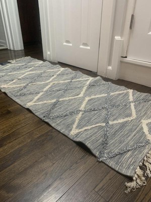 Refresh your decor with this soft and subtle accent rug in today's modern neutrals. A soothing light grey and ivory weave brings an accent of texture and harmony into your room. Fringe finish completes its soft appeal! Perfect for your contemporary, eclectic or bohemian decor, in a light and airy open-diamond pattern. The cotton-polyester-rayon blend is spot cleanable.