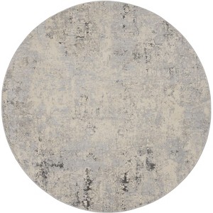 Abstract tones and carved distress patterns bring a textured elegance and modern chic to this Rustic Textures Collection rug. Charcoal and grey splashes on an ivory field of soft, easy-care fibers brings a modern artistic air to any interior décor.
