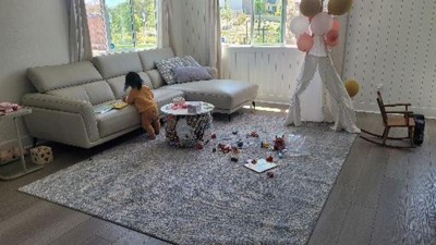A: The rug has a subtle high-low weave that feels delightfully soft underfoot.