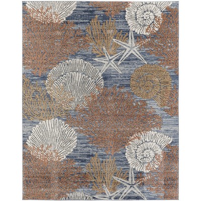 Nourison Suncoast 7'10" x 9'10" Teal Multicolor Coastal, Nautical & Beach Indoor/Outdoor Flatweave Rug
